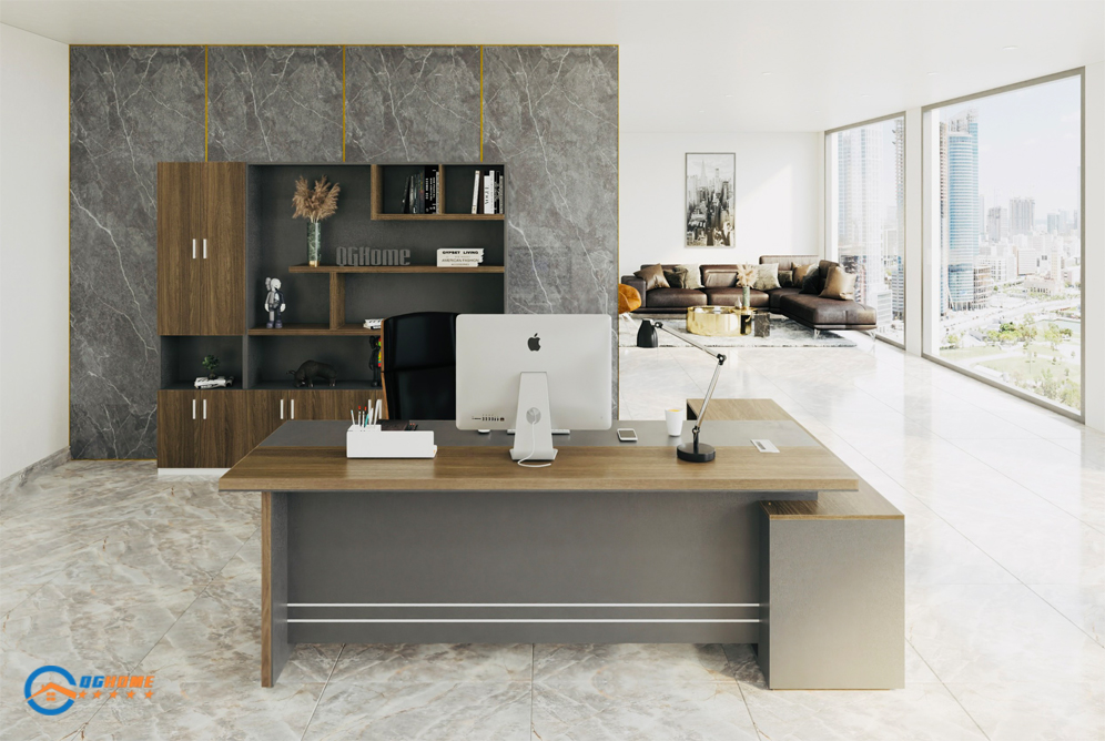 Bàn giám đốc QGĐ27 được sản xuất và phân phối bởi QGHome Việt Nam. Mẫu bàn sở hữu vẻ đẹp sang trọng, đường nét tinh tế sẽ mang đến cho nhà lãnh đạo một không gian làm việc đẳng cấp. Từ đó góp phần khẳng định sự uy quyền và phong thái uy nghiêm của người đứng đầu.
