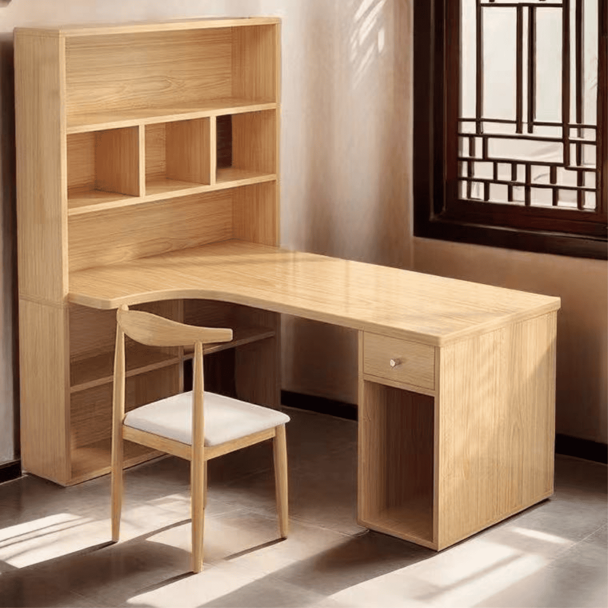 Sản phẩm bàn học 1m5 kết hợp giá để sách BHS02 của QGHome Việt Nam nổi bật với sự kết hợp tinh tế giữa phong cách hiện đại và tính năng linh hoạt. Với kích thước dài 1500mm, rộng 1000mm và cao 1800mm , bàn không chỉ tối ưu hóa không gian mà còn góp phần tạo nên một điểm nhấn thẩm mỹ trong căn phòng, làm cho quá trình học tập và làm việc trở nên dễ dàng và hiệu quả hơn.