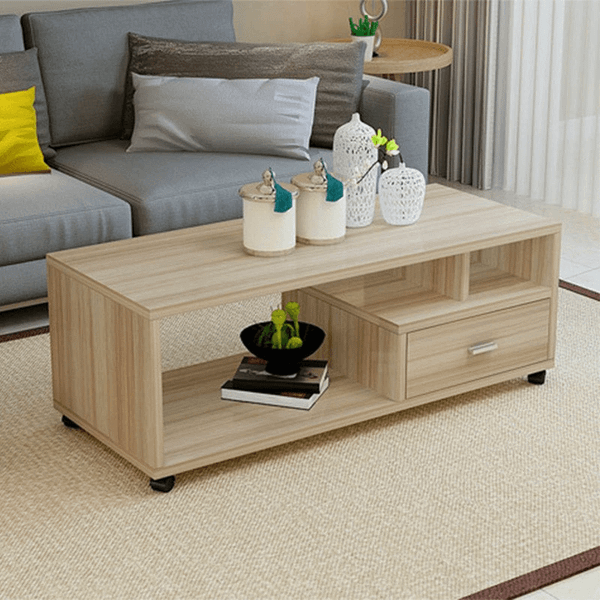 Bàn trà sofa gỗ mdf-BT02 được tích hợp một ngăn kéo bàn linh hoạt, cùng với đó là các hộc tủ mở rộng giúp bạn có thể tận dụng các khoảng trống để lưu trữ một số đồ đạc lặt vặt nhỏ như sách báo, tạp chí, đồ trang trí,…
