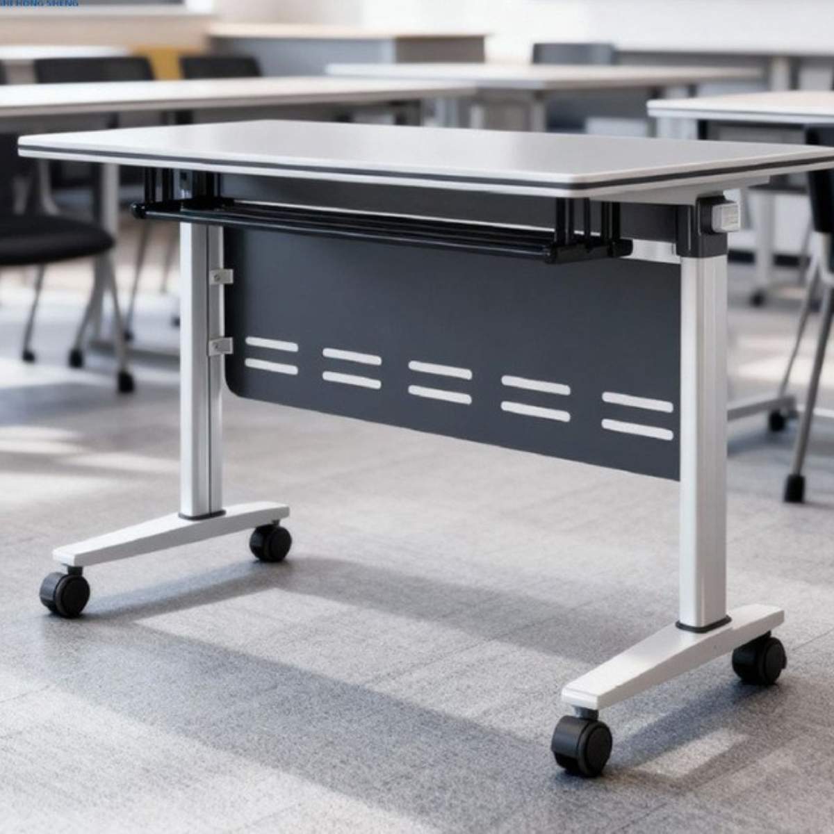 - Phụ kiện: Yếm bàn bằng tôn, 4 bánh xe nhựa di chuyển phía dưới khung bàn.