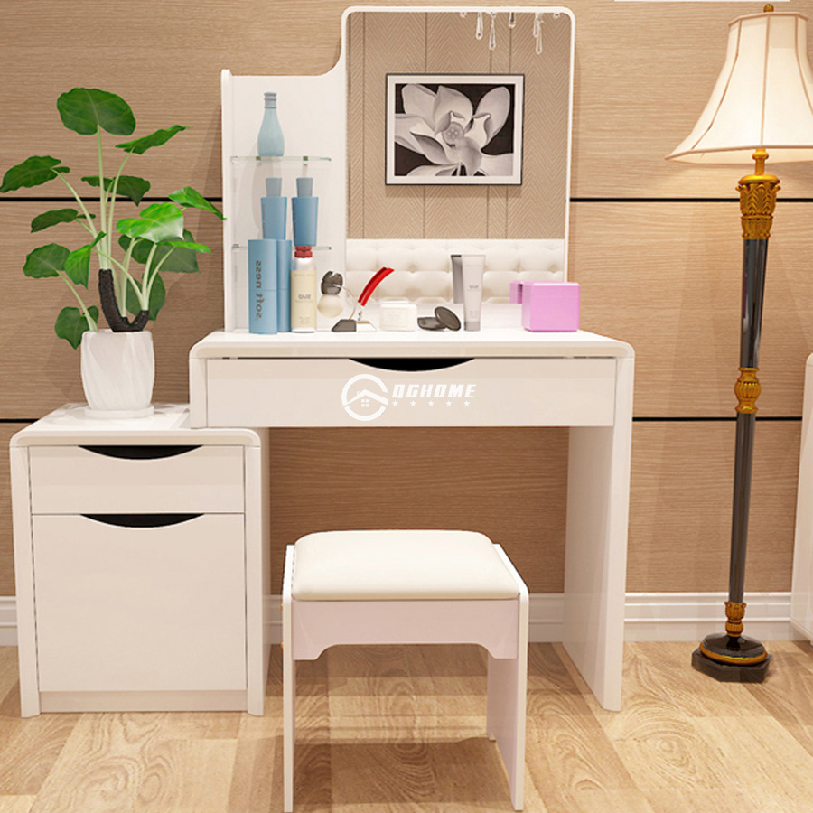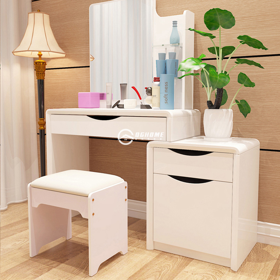 Một trong những điểm nổi bật của BTĐ05 chính là gương soi được QGHome thiết kế tỉ mỉ từng góc cạnh và hệ thống lưu trữ thông minh với 3 ngăn tủ kéo, mở được tối ưu hóa. Mỗi ngăn kéo được chia thành các ô nhỏ, giúp bạn dễ dàng sắp xếp trang sức, mỹ phẩm, và các vật dụng cá nhân một cách ngăn nắp và tiện lợi. Thiết kế này giúp cho không gian của bạn luôn gọn gàng và ngăn nắp.
