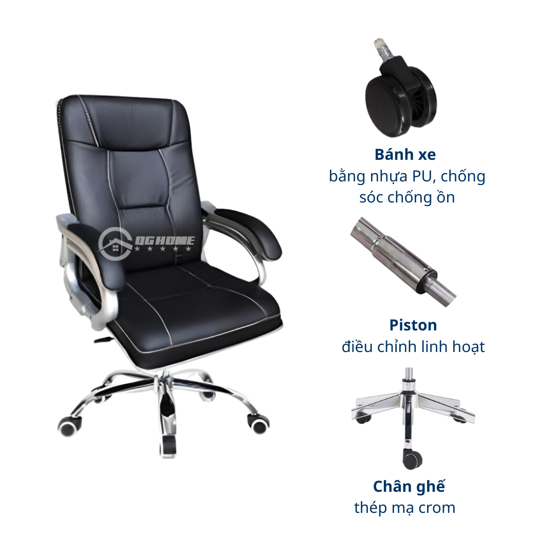 - Tay ghế với khung bạc inox bọc da giúp hoạt động làm việc thoải mái