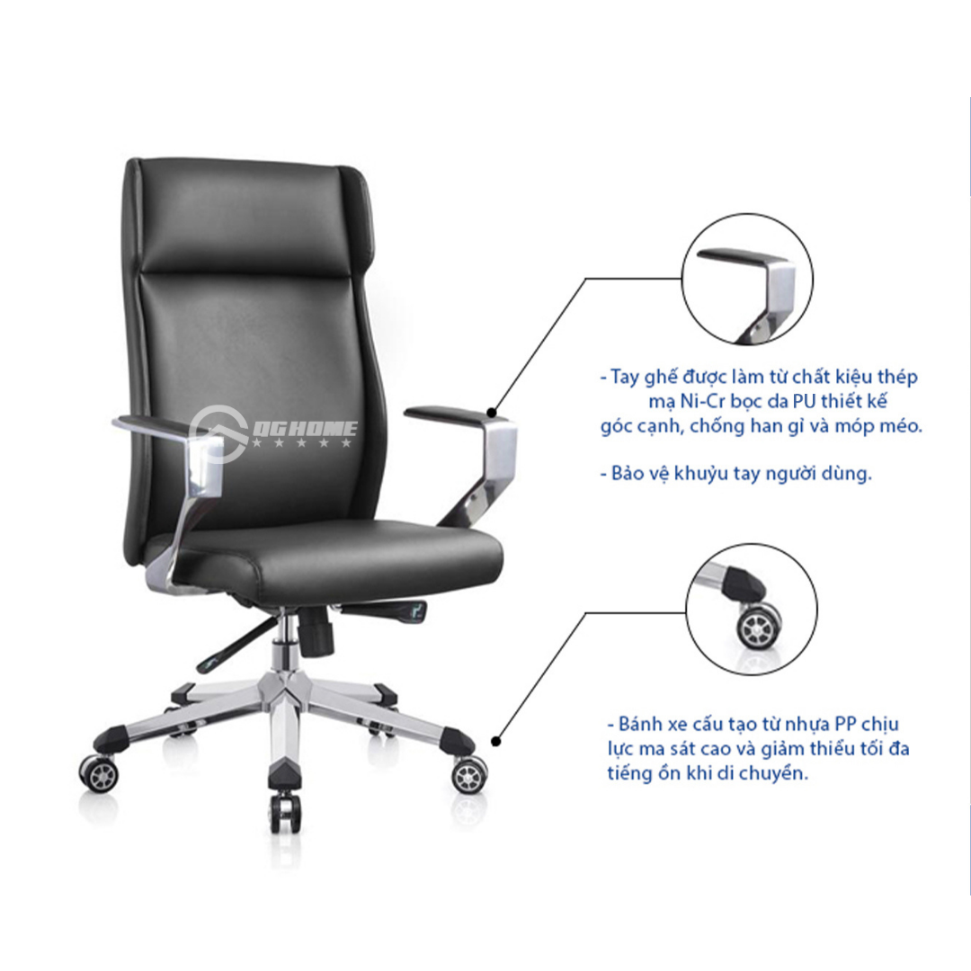 Ghế giám đốc tay bạc với thiết kế vững chắc cùng chất liệu da cao cấp khẳng định phong cách văn phòng đẹp. Chiếc ghế với độ ngả vừa phải giúp bạn có thể nghỉ ngơi sau những giờ làm việc căng thẳng.