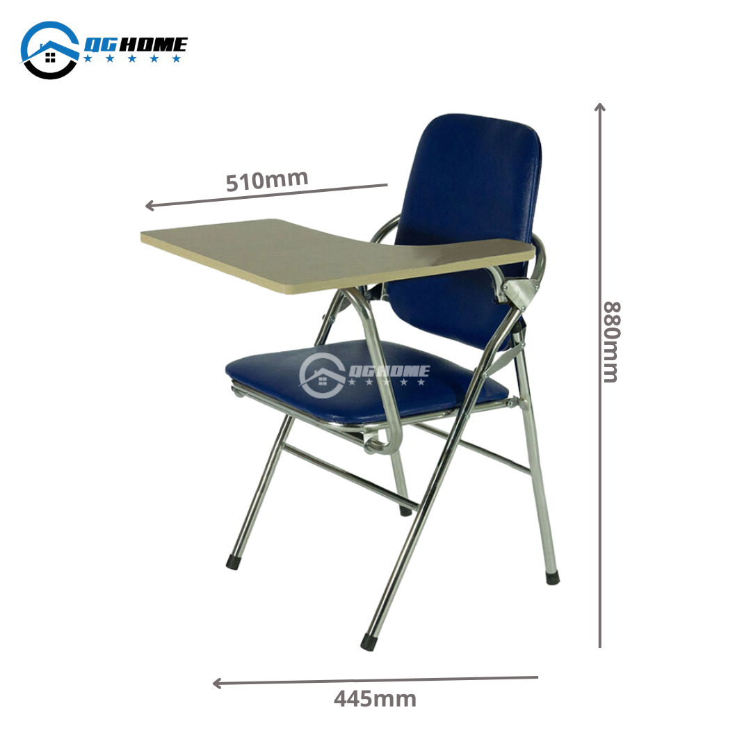 - Bàn đi kèm có thể gập ra vào linh hoạt, thiết kế mặt gỗ vân sồi
