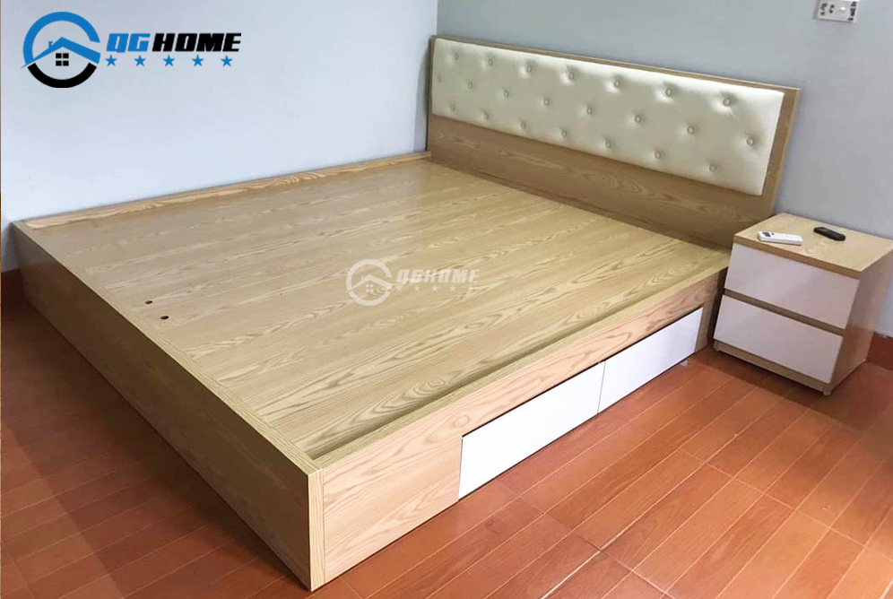 Giường ngủ gỗ công nghiệp sở hữu kiểu dáng đơn giản mà vẫn toát lên vẻ sang trọng, tinh tế. Với thiết kế dạng phản chắc chắn, giường không chỉ mang lại sự vững chãi mà còn tạo nên một điểm nhấn ấn tượng cho không gian phòng ngủ.