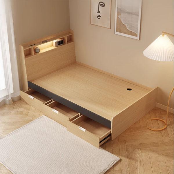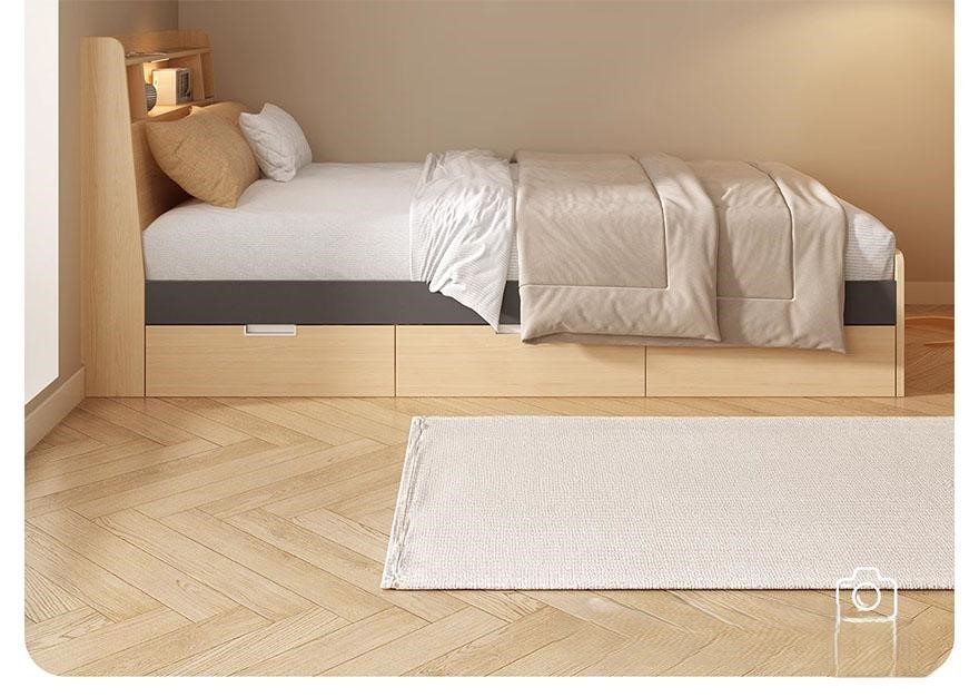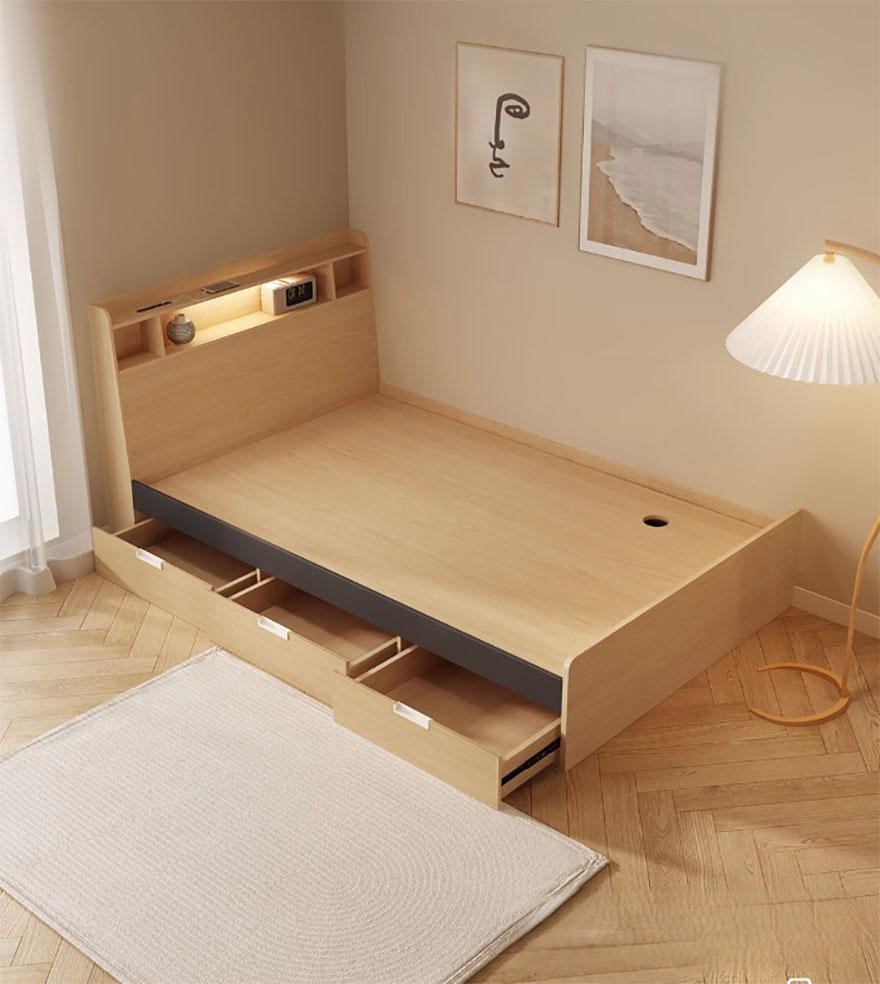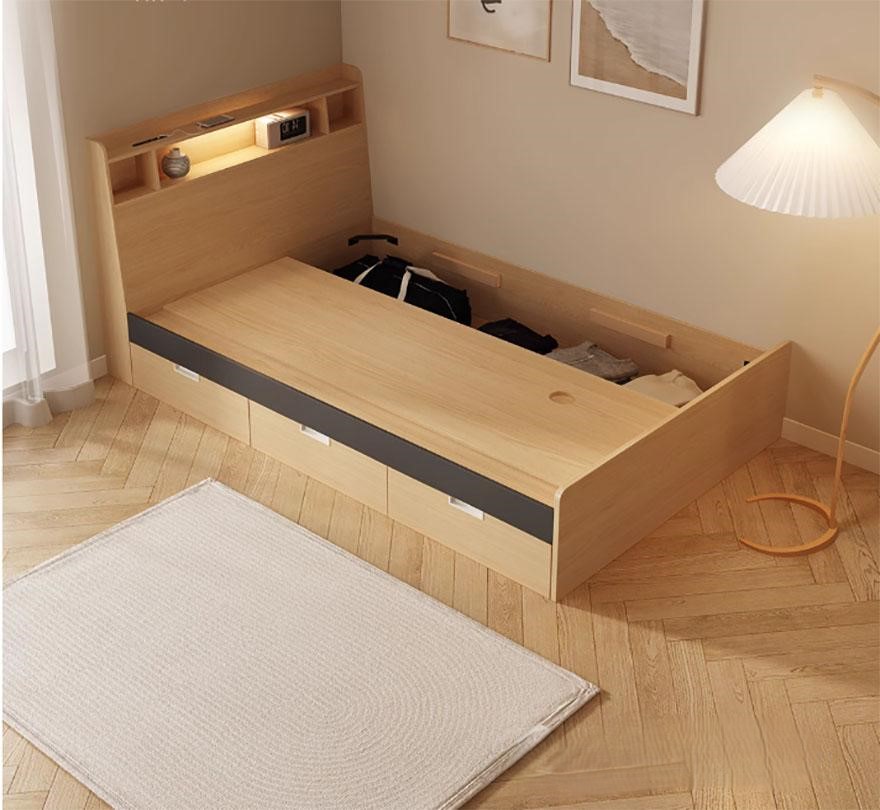 Những hộc tủ đủ lớn và rộng rãi để bạn có thể cất chăn màn, đệm, quần áo,…Phần đầu giường có thể để sách để tiện lấy ra và cất đi, rất phù hợp cho những ai có thói quen thường xuyên đọc sách trước khi khi ngủ.