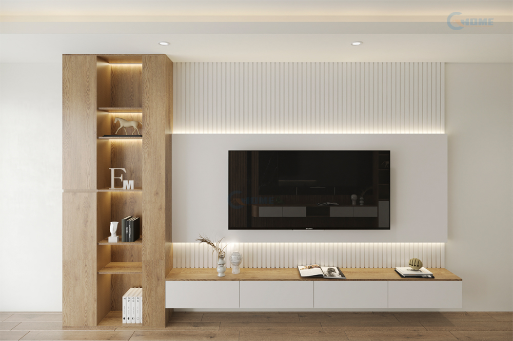 Mẫu kệ tivi kết hợp vách ngăn VTVQ13