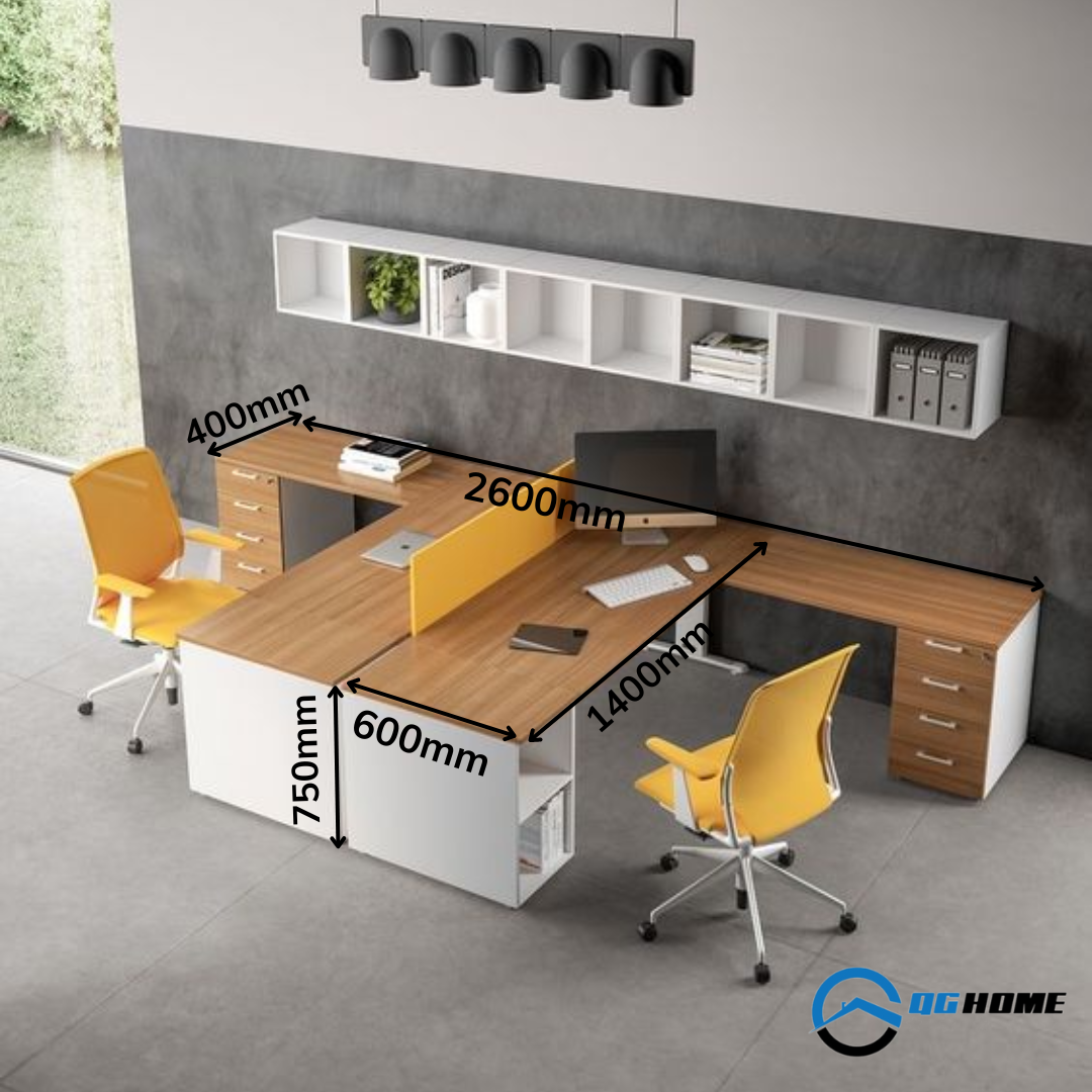 – Hộc tủ chân bàn 2 tầng và 2 tủ đựng tài liệu (4 ngăn kéo)
