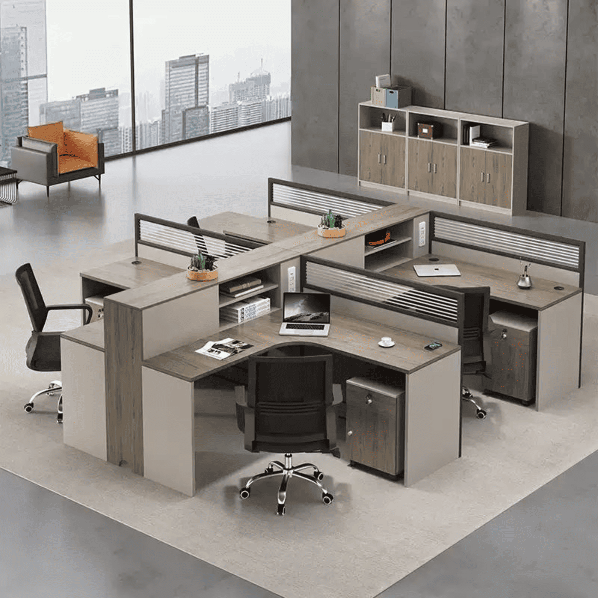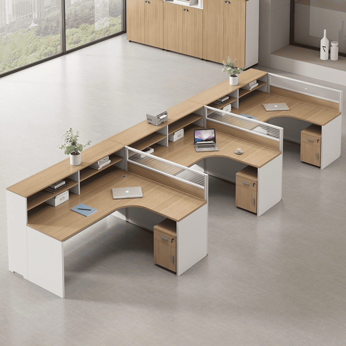 - Vách ngăn: Các tấm chắn nhỏ giúp tạo sự riêng tư giữa các vị trí làm việc liền kề.
