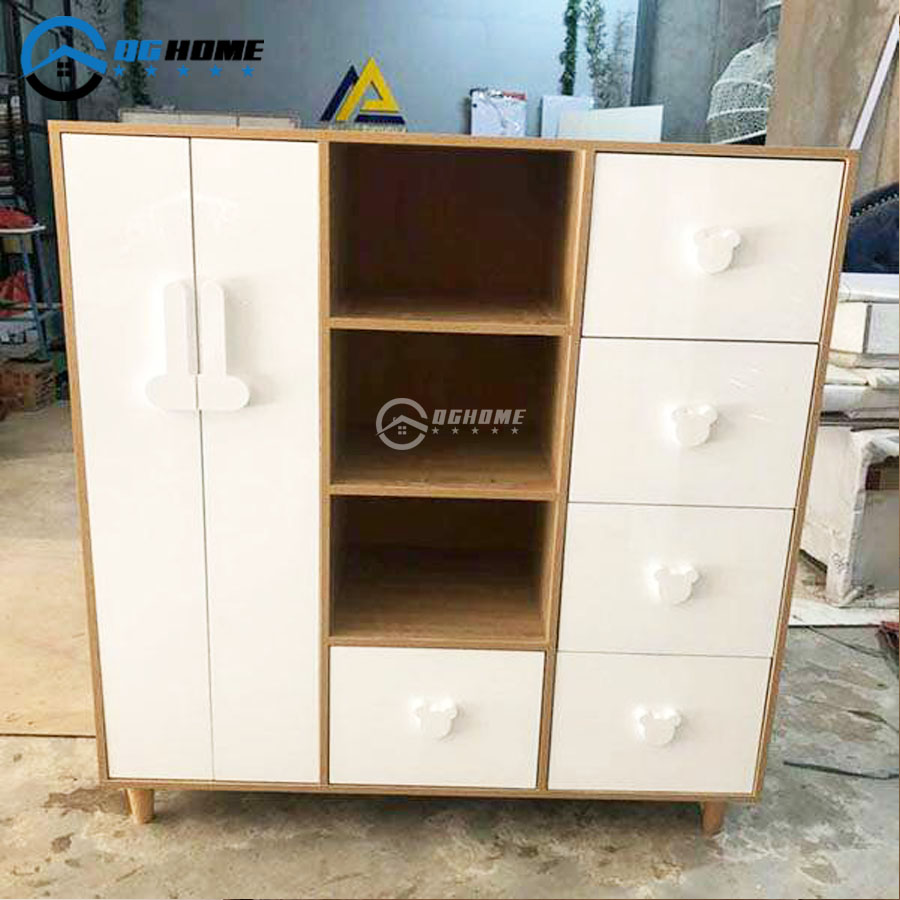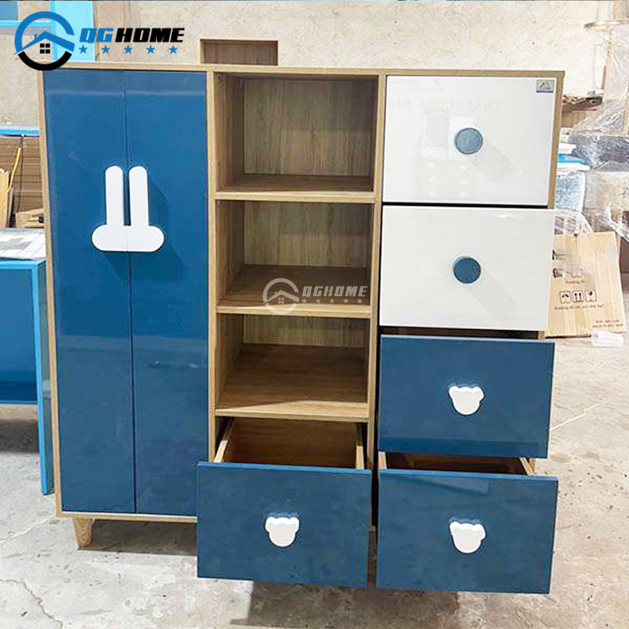 Với kích thước nhỏ gọn 1m25x1m2, tủ dễ dàng hòa mình vào không gian phòng ngủ mà không chiếm quá nhiều diện tích. Thiết kế tinh tế với các ô ngăn kéo và khoang treo quần áo rộng rãi giúp bạn dễ dàng sắp xếp và phân loại trang phục cho bé. Các chi tiết trên tủ, từ tay cầm đến đường viền, đều được chăm chút kỹ lưỡng, mang đến vẻ đẹp hài hòa và thân thiện với trẻ nhỏ.