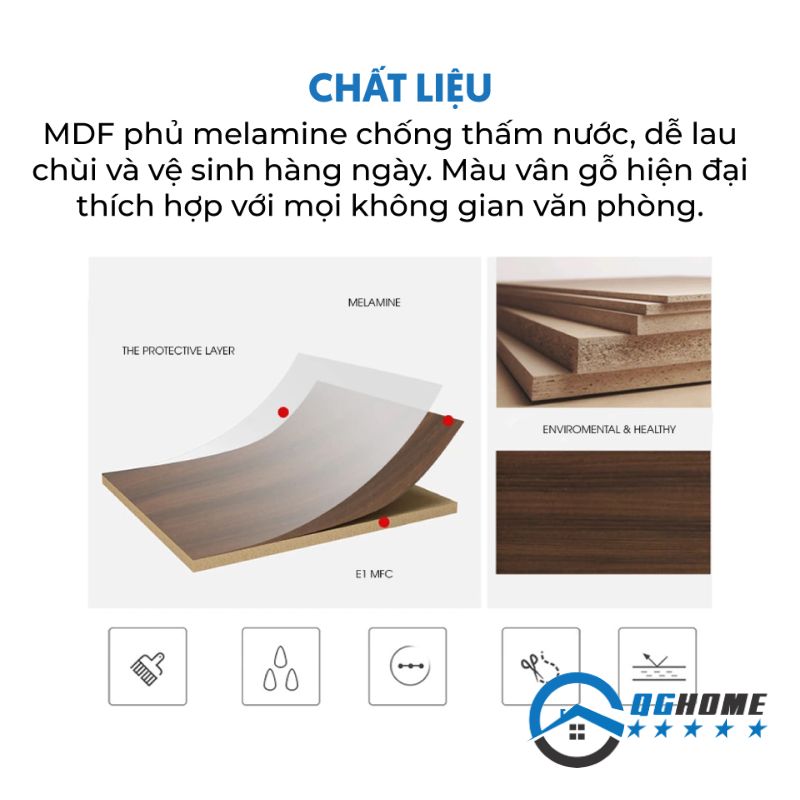 - Chất liệu: Gỗ MDF phủ Melamine
